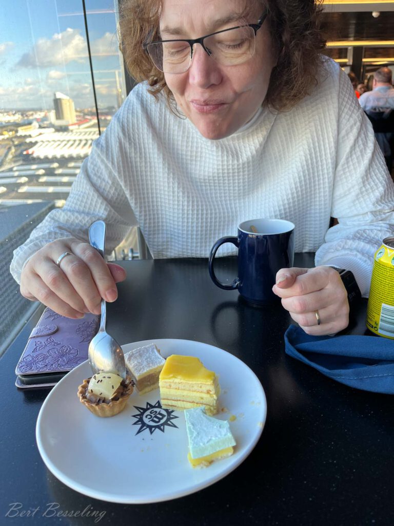 Halverwege de middag naar de Virtuosa teruggekeerd en natuurlijk nog een snackje gegeten en wat gedronken in het buffet.