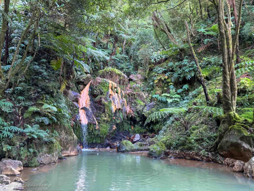 Vandaag weer land gezien! Om 8 uur kwamen we aan in Ponta Delgada (Azoren) en om half 9 vertrokken we met de bus voor een excursie naar de bergtop Pico da Barrosa (940mtr boven zee) met uitzicht over het kratermeer Lagoa do Fogo. Hier zijn we even blijven staan voor een foto momentje waarna we zijn doorgereden naar aan ander uitzichtpunt over hetzelfde meer. Daarna zijn we doorgereden naar Caldeira Velha. Caldeira Velha is een natuurreservaat in een tropische regenwoud met een aantal hot springs (waarin je kan zwemmen), palmbomen, varens en andere tropische planten. De laatste stop die we maakten was bij een thee plantage waar we ook een rondleiding kregen met daarna een kopje thee met ananastaart. Erg lekker was dat. Rond half 1 waren we weer in de haven.
