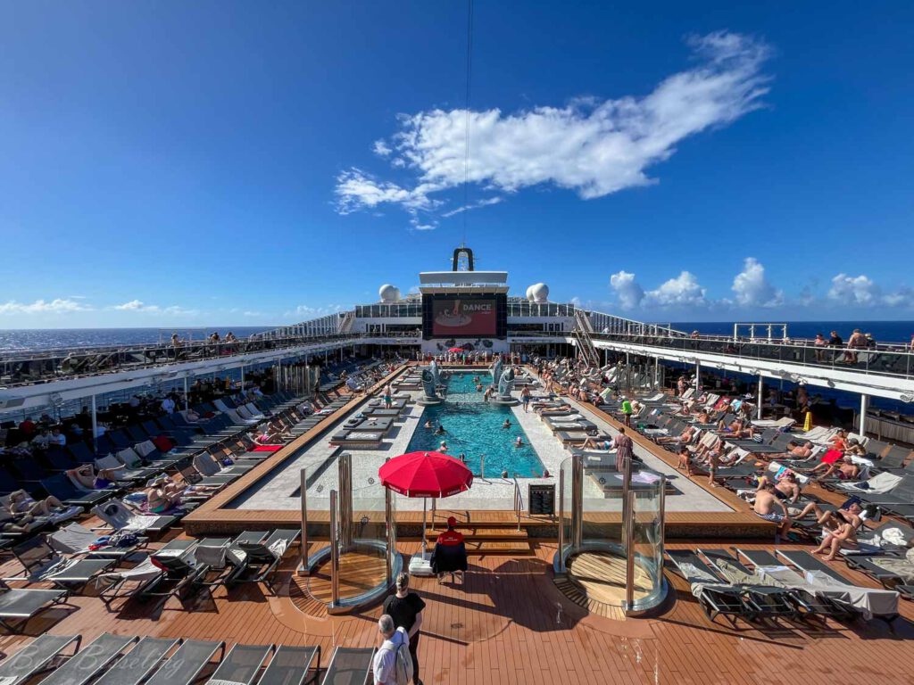 Een repositioning cruise is bedoeld om het schip te verplaatsen van bijvoorbeeld het zomerseizoen in Europa naar het winterseizoen in het Caribisch gebied of Zuid-Amerika. Deze cruises vallen buiten de vakantieperiode en zijn er nauwelijks kinderen aan boord. Met ongeveer 3800 passagiers was deze overtocht niet vol. Een nadeel zou kunnen zijn dat je vaak meerdere zeedagen (achter elkaar) hebt. Bij de “behind the scene” tour werd aangegeven dat het productieteam (dansers en zangers) voor het theater niet aanwezig was. Hiervoor werden gastartiesten gebruikt voor 1 of 2 optredens, dit maakt het wel speciaal. Alleen tijdens de laatste paar dagen was het productieteam aanwezig.