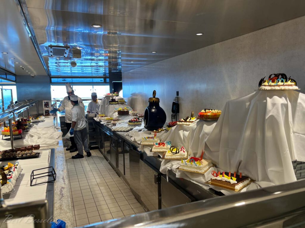 – Bij volledige bezetting van de passagiers zijn er maximaal 6330 passagiers aan boord en zijn er dus meer dan 2 personen in een aantal hutten;