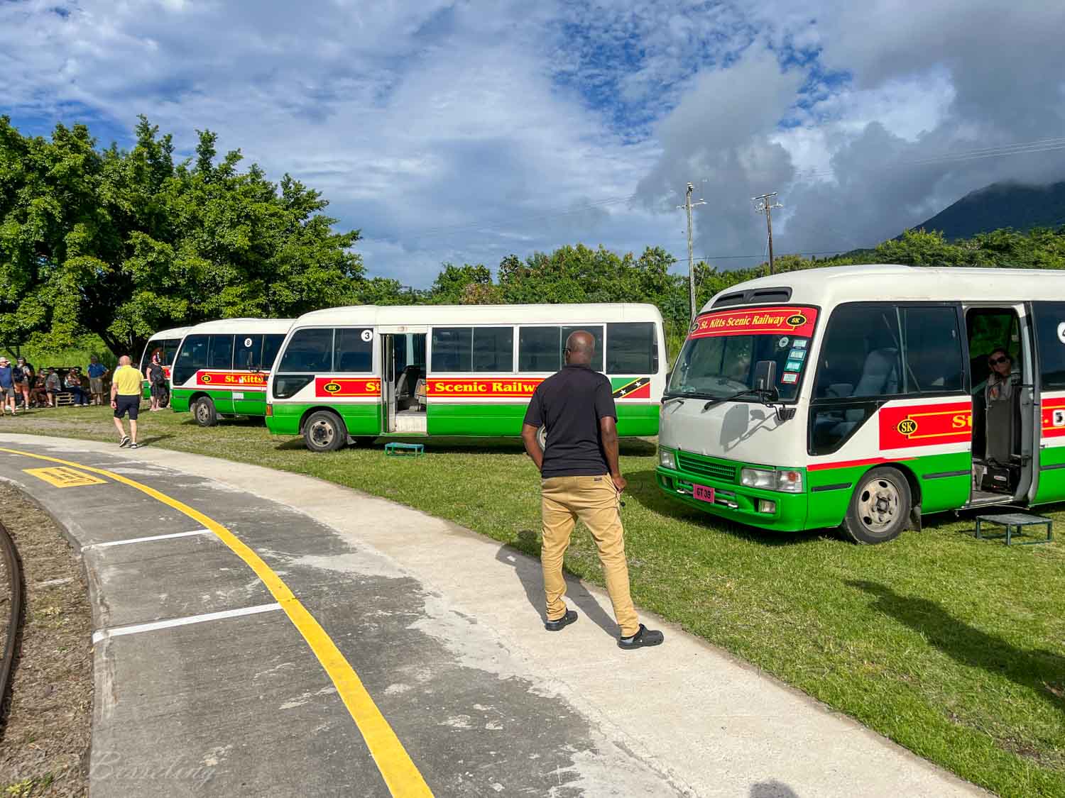 Na de lunch zijn we naar het verzamelpunt aan het begin van de pier gelopen. Met bussen werden we naar het begin punt van de trein gebracht, waarbij de buschauffeur op een leuke manier over de wetenswaardigheden van St. Kitts zat te vertellen. De trein was een smalspoorlijn en deze lijn werd vroeger gebruikt om tussen de suikerplantages te rijden.