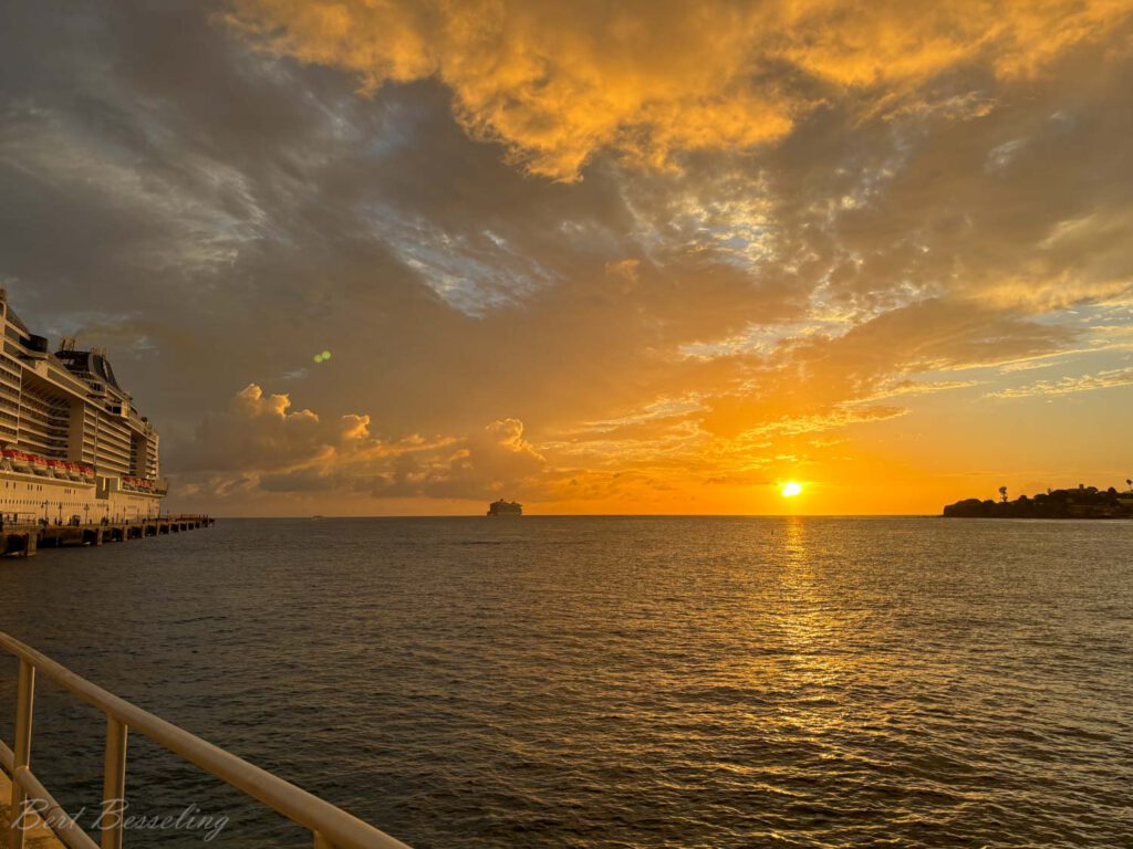 De zon moest nog opkomen toen we bij Barbados aankwamen. Na 5 dagen varen zagen we weer land. Voor vandaag hadden wij zelf de excursie “Explore & Discover Barbados” geboekt bij Beautiful Barbados Tours & Excursions. We hebben een aantal bezienswaardigheden van Barbados gezien: Cherry Tree Hill, Morgan Lewis Windmill, Bathsheba, St John’s Church en we zijn naar Carlisle Beach geweest voor een Turtle & Shipwreck Snorkel Cruise. Helaas waren de schildpadden kleiner dan we hadden verwacht. De Atlantisce Oceaan was wel lekker warm en op de boot was het erg gezellig. Zeker de moeite waard!