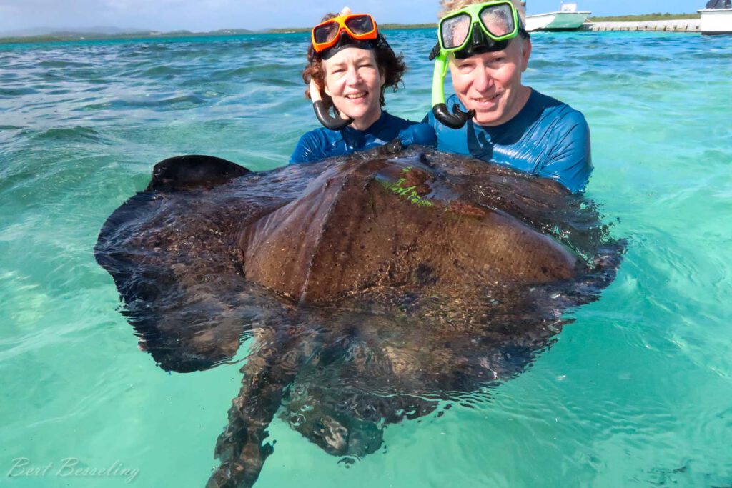 Voor Antigua hadden we zelf weer een excursie geboekt. De excursie “6-Hours Tour East Coast of Antigua: Stingray City, Lunch & Beach”. Bij de pier werden we opgepikt door Andrew. Het bleek dat er nog een koppel mee zou gaan, maar die zaten op een ander cruiseschip die nog binnen moest komen. Aangezien er bij de roggen in stingray city wordt gewerkt in blokken van een uur, zijn wij vertrokken en hebben de hele dag een privé excursie van Andrew gehad. Bij Stingray city moesten we even wachten en uiteindelijk gingen we met een groep op een boot naar een soort zandbank wat verder de zee in. Hier bleken de roggen rond te zwemmen en kon je ze aanraken, je had ook de mogelijkheid om ze eten te geven. Na een minuut of veertig gingen we weer terug. Daarna zijn we naar Long bay beach gegaan waar we heerlijk een uurtje onder een parasol op het strand hebben gezeten. We hebben nog Devil’s Bridge National Park bezocht, we zijn wezen lunchen en hebben nog een vergane suikerplantage gezien. Op de terugweg zijn we op verzoek van Eveline nog gestopt bij een grote supermarkt, waarna we rond 3uur weer terug kwamen bij de Virtuosa.