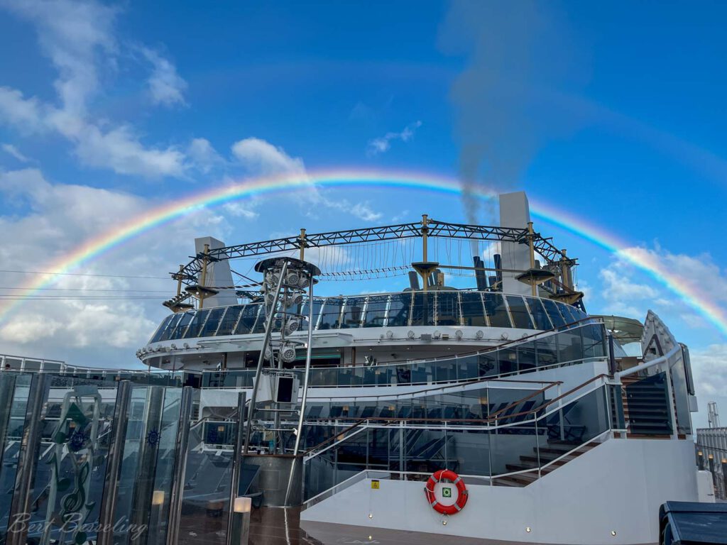 De derde en laatste zeedag voordat we op de Azoren aankomen: weer bijtijds op voor een lezing over St Kitts en Nevis. Na de lunch hebben we gebowld. Erg interessant, want je wist nooit waar de bal heen ging. Schip gaat niet erg te keer, maar genoeg om de bowlingbal soms alle kanten op te laten gaan. Later in de middag een versie van “Masterchef” bijgewoond. De deelnemers waren passagiers die zich blijkbaar gisteren hadden geplaatst voor deze finale met een mystery box. Twee Italiaanse mannen wonnen de hoofdprijs. ’s Avonds naar de voorstelling van ODY-C geweest (andere voorstelling dan de vorige) en daarna was de Beatles party.